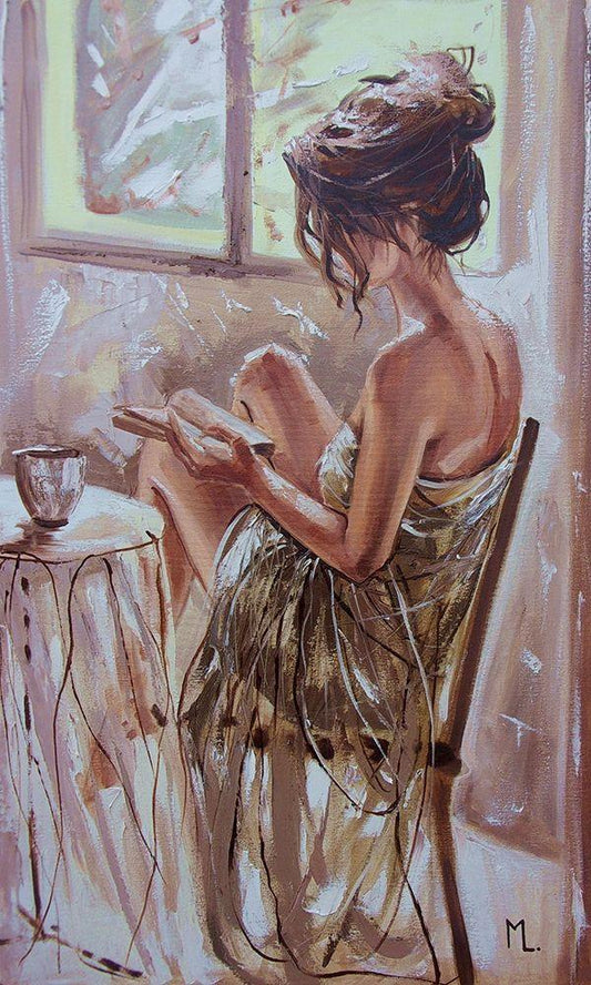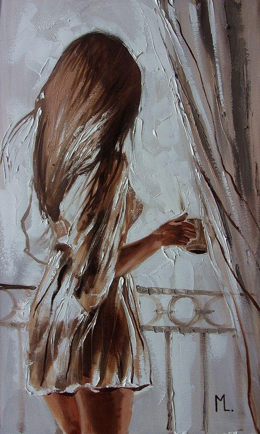 Braiding Hair White Modern Wood Framed Art Print with Double Matting by Zakrynycny, Viktor