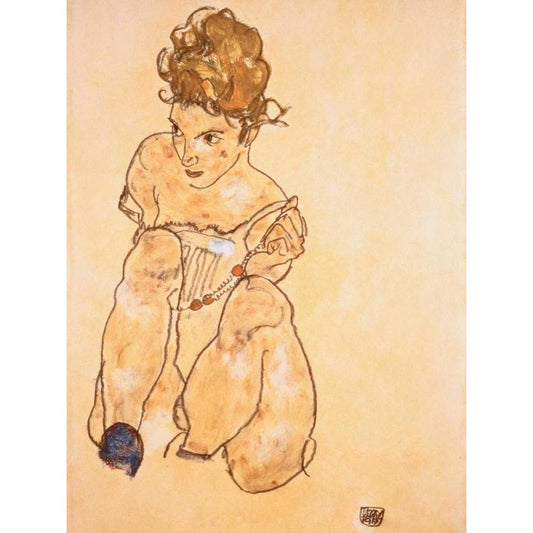 Seated Girl in Slip White Modern Wood Framed Art Print by Schiele, Egon