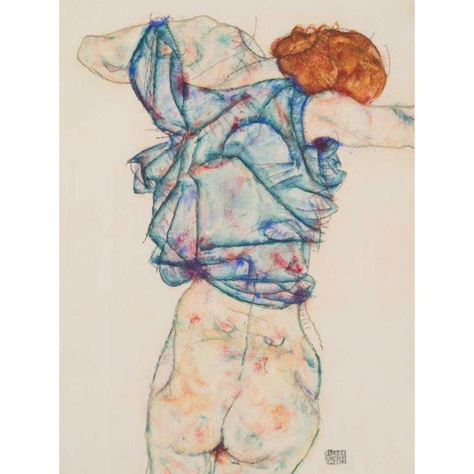 Woman Undressing White Modern Wood Framed Art Print by Schiele, Egon