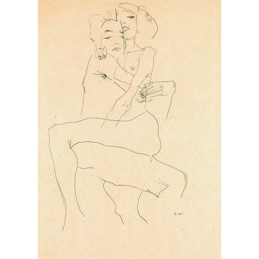 Couple Embracing White Modern Wood Framed Art Print by Schiele, Egon