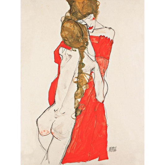 Mother and Daughter White Modern Wood Framed Art Print by Schiele, Egon