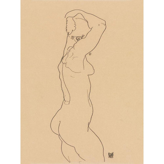 Standing Nude-Facing Right White Modern Wood Framed Art Print by Schiele, Egon