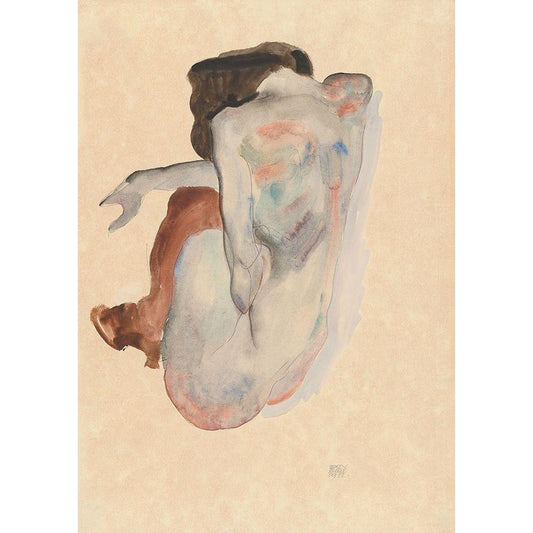 Crouching Nude in Shoes and Black Stockings-Back View White Modern Wood Framed Art Print by Schiele, Egon