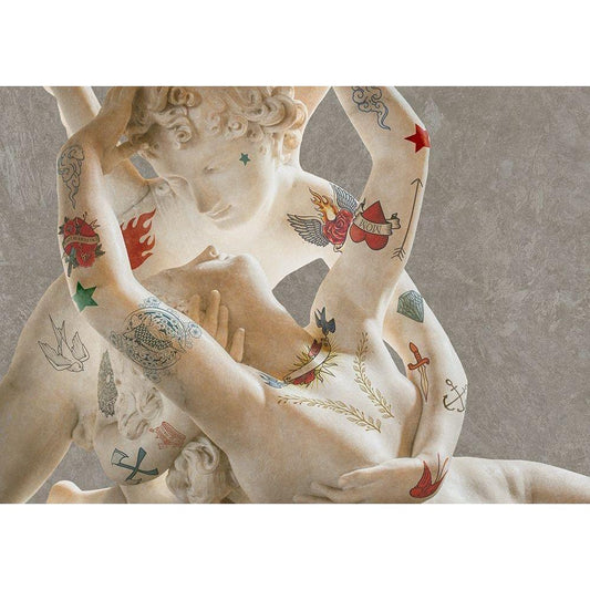 Tattooed Lovers (Cupid And Psyche) White Modern Wood Framed Art Print by Hill, Steven
