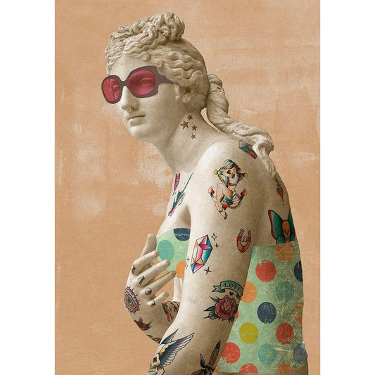 Tattooed Venus White Modern Wood Framed Art Print by Hill, Steven