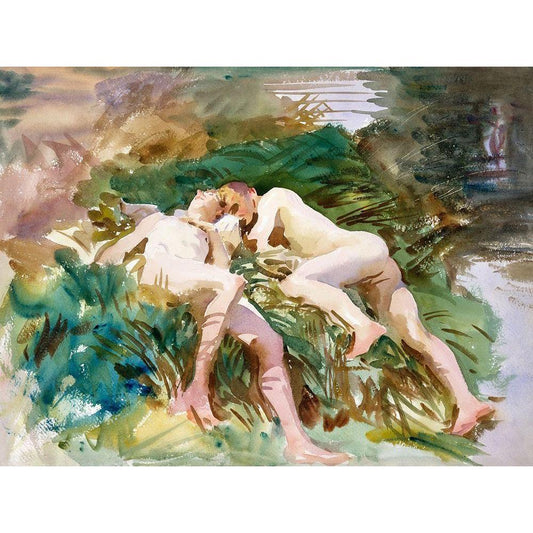 Tommies Bathing Gold Ornate Wood Framed Art Print with Double Matting by Sargent, John Singer