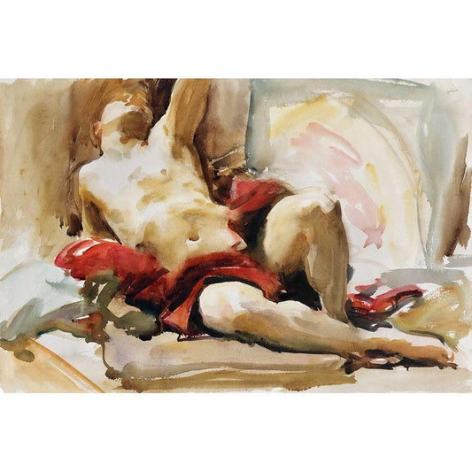 Man with Red Drapery Gold Ornate Wood Framed Art Print with Double Matting by Sargent, John Singer