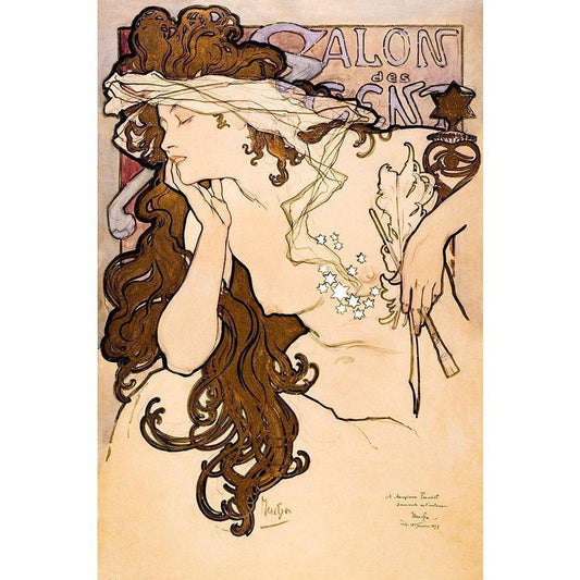 Salon des Cent poster Gold Ornate Wood Framed Art Print with Double Matting by Mucha, Alphonse
