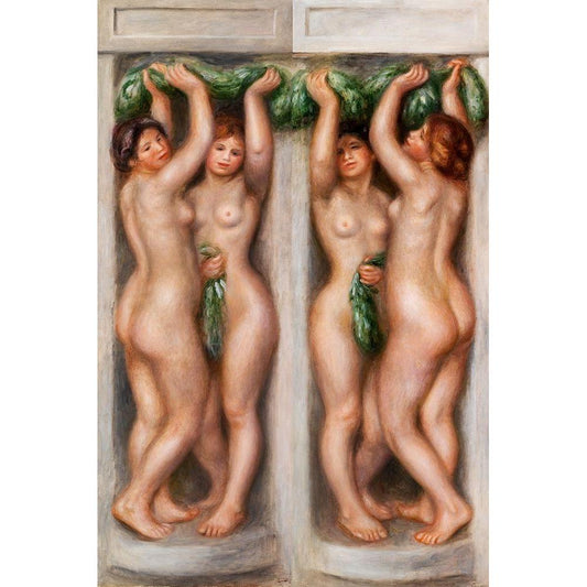 Caryatids Gold Ornate Wood Framed Art Print with Double Matting by Renoir, Pierre-Auguste