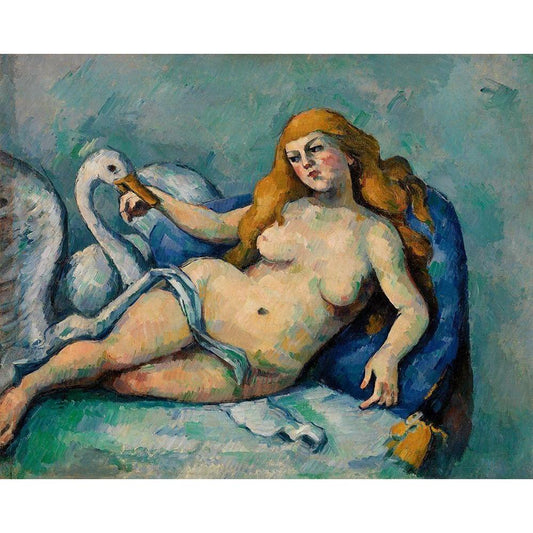 Leda and the Swan Gold Ornate Wood Framed Art Print with Double Matting by Cezanne, Paul