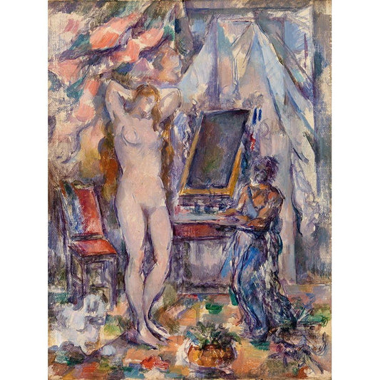 Academic Nude, Seen from the Back Gold Ornate Wood Framed Art Print with Double Matting by Cezanne, Paul