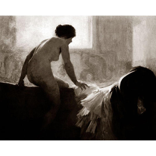 Au Coucher Gold Ornate Wood Framed Art Print with Double Matting by Vintage Nudes