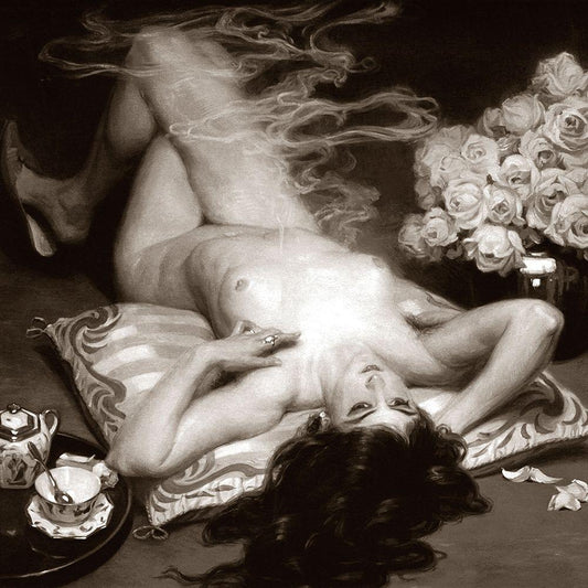 Leisure Time Gold Ornate Wood Framed Art Print with Double Matting by Vintage Nudes