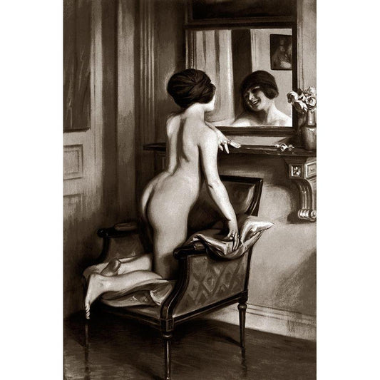 The Smile in the Mirror Gold Ornate Wood Framed Art Print with Double Matting by Vintage Nudes