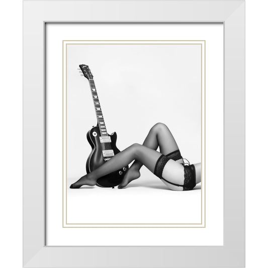 Lady And The Strat White Modern Wood Framed Art Print with Double Matting by Drake, David