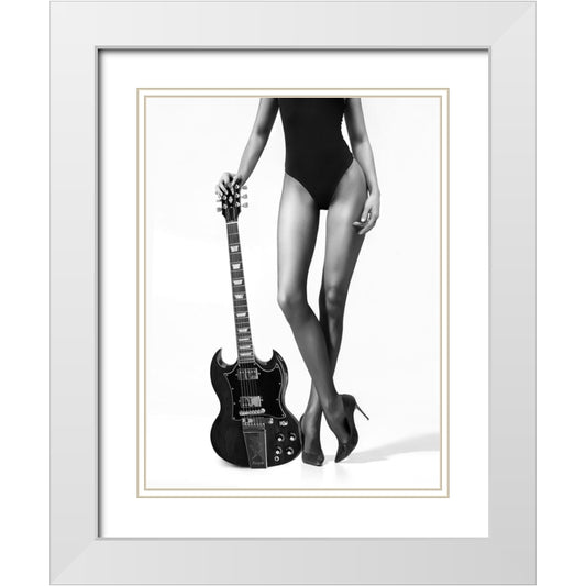 Leggy Les Paul White Modern Wood Framed Art Print with Double Matting by Drake, David