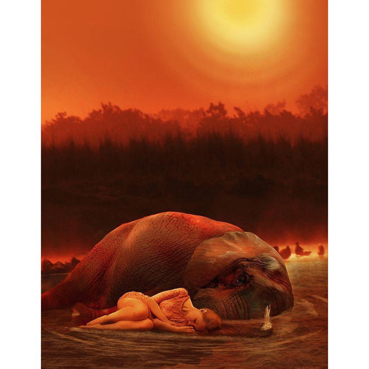 Elephant Ritual 2 Gold Ornate Wood Framed Art Print with Double Matting by Babette