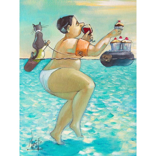 Wine On The Jetty Gold Ornate Wood Framed Art Print with Double Matting by West, Ronald