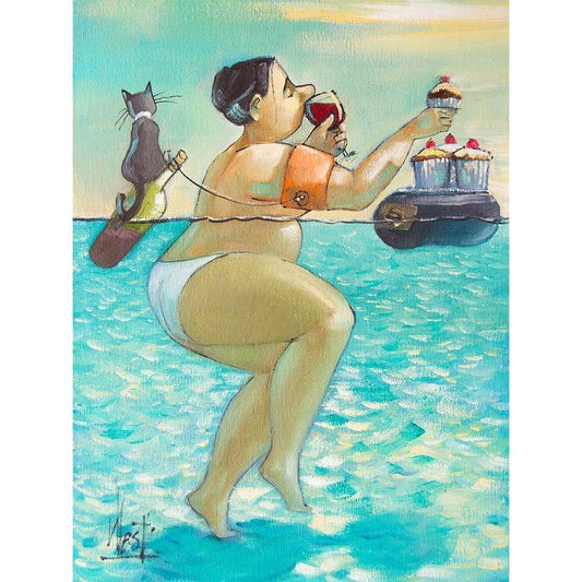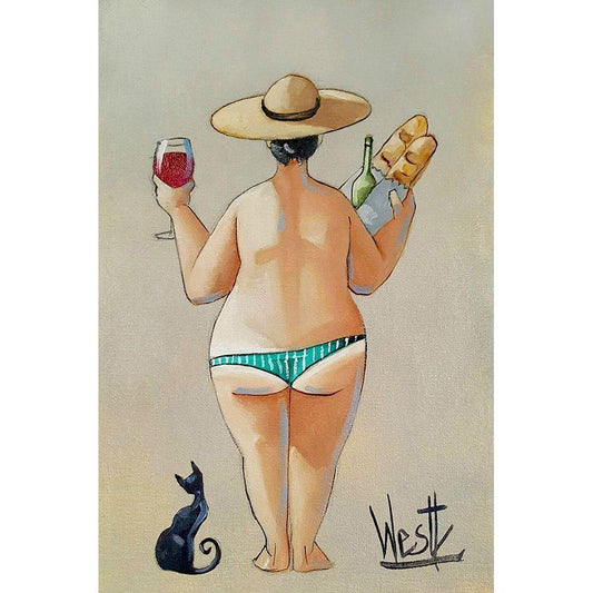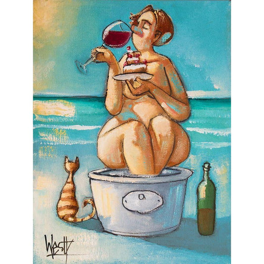 Wine and Cake in a Tub Black Modern Wood Framed Art Print by West, Ronald