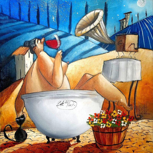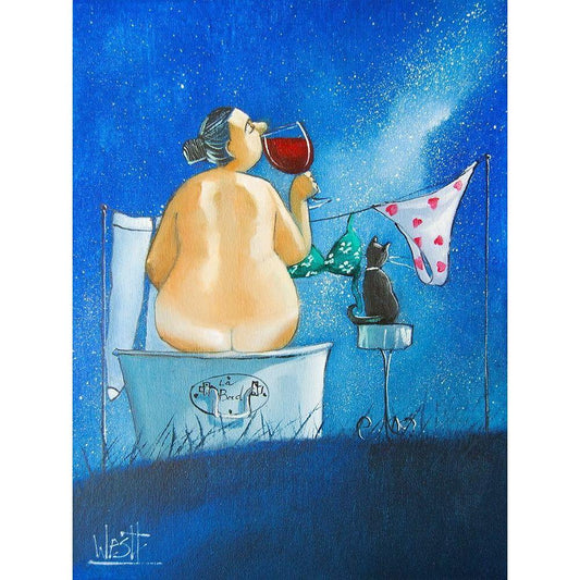 Wine in the Bathtub Black Modern Wood Framed Art Print by West, Ronald