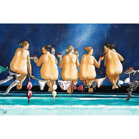 Musicians Bathing Black Modern Wood Framed Art Print by West, Ronald