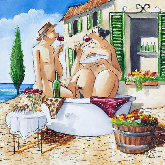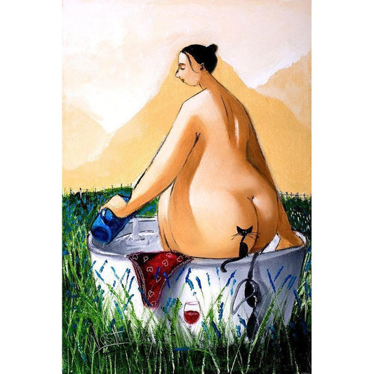 Couple Bathing Black Modern Wood Framed Art Print by West, Ronald