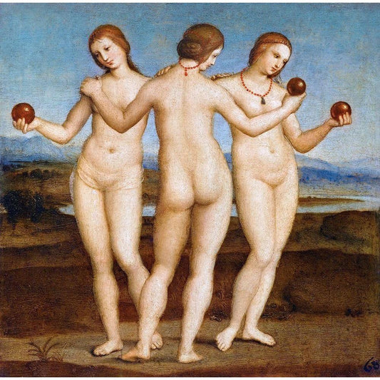 Three Graces Black Modern Wood Framed Art Print by Raphael