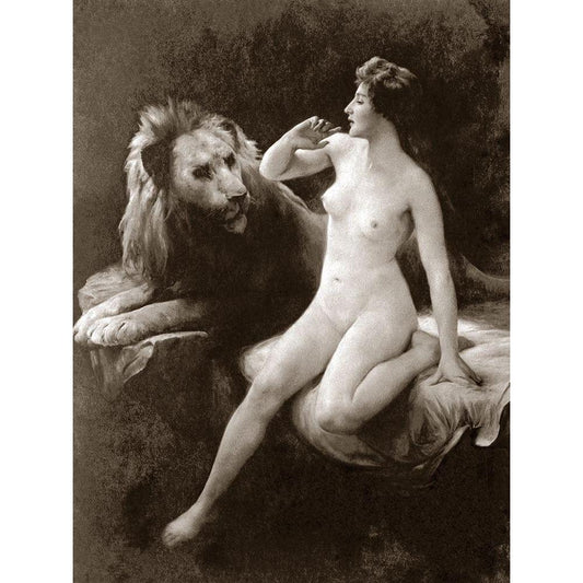 Nude with a Lion Black Modern Wood Framed Art Print by Vintage Nudes