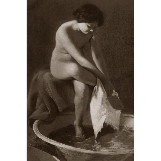 Pouring a Bath Black Modern Wood Framed Art Print by Vintage Nudes