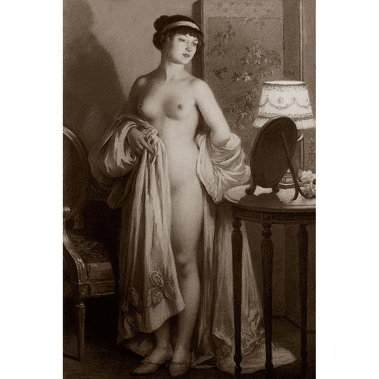 Le Miroir Black Modern Wood Framed Art Print by Vintage Nudes