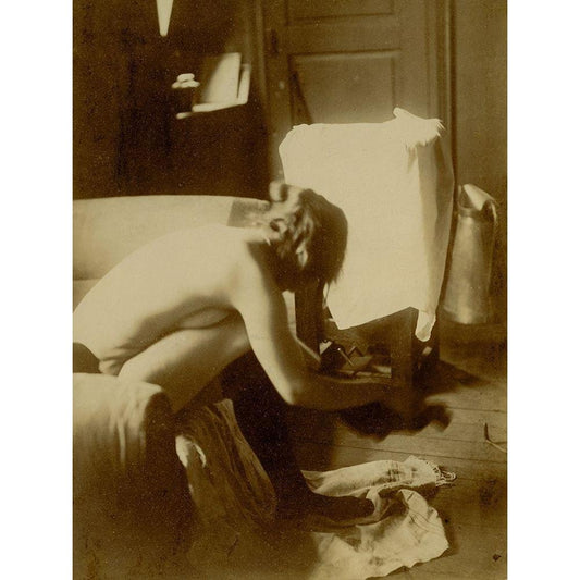 Au Coucher Black Modern Wood Framed Art Print by Vintage Nudes