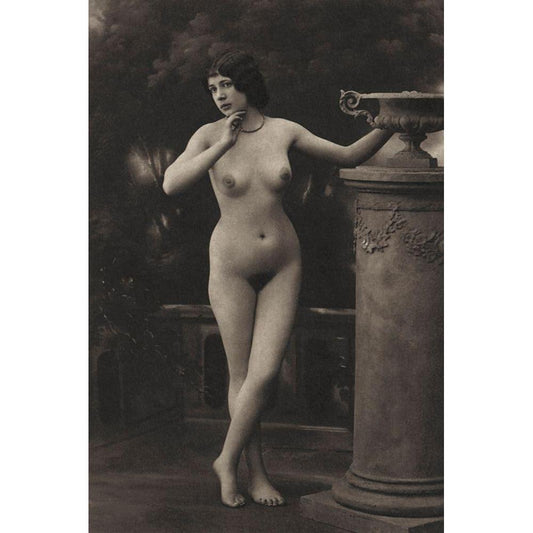 Figure, Column, Vase Black Modern Wood Framed Art Print by Vintage Nudes