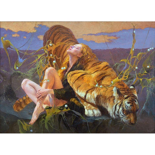 Pearl hunters Black Modern Wood Framed Art Print by Klapoukh, Yury