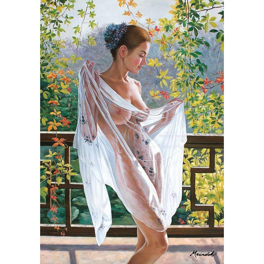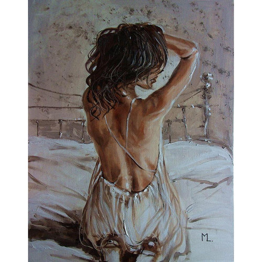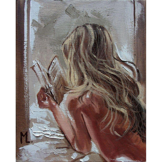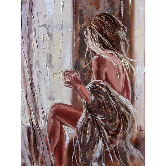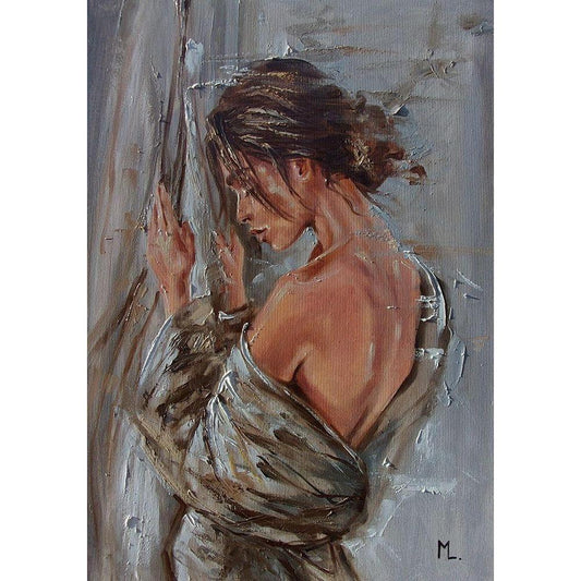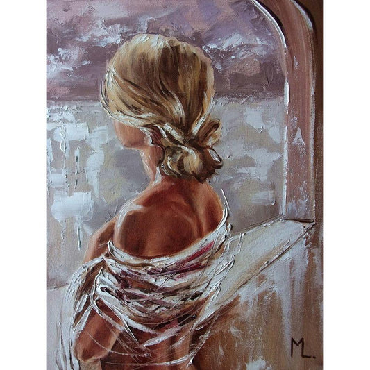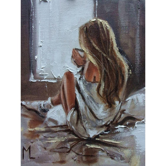 Blond Girl by Window Black Modern Wood Framed Art Print by Maindok, Paul
