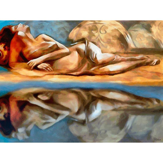 Mirrored Girl Black Modern Wood Framed Art Print by Medeiros, Celito