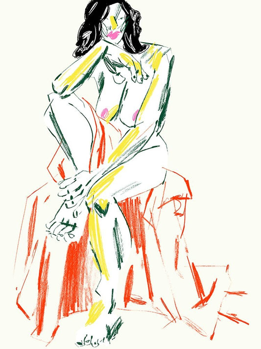 White And Yellow Nude Black Modern Wood Framed Art Print by Gulina, Francesco