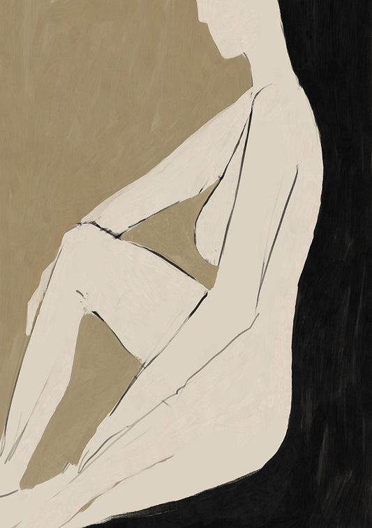 Nude Yellow Black Modern Wood Framed Art Print by Pictufy Studio