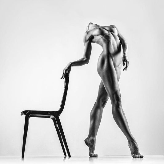 Dancing With The Chair Black Modern Wood Framed Art Print by Valevicius, Aurimas