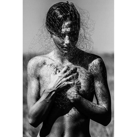 The Model And Her Veil Black Modern Wood Framed Art Print by Noguera, Cesc
