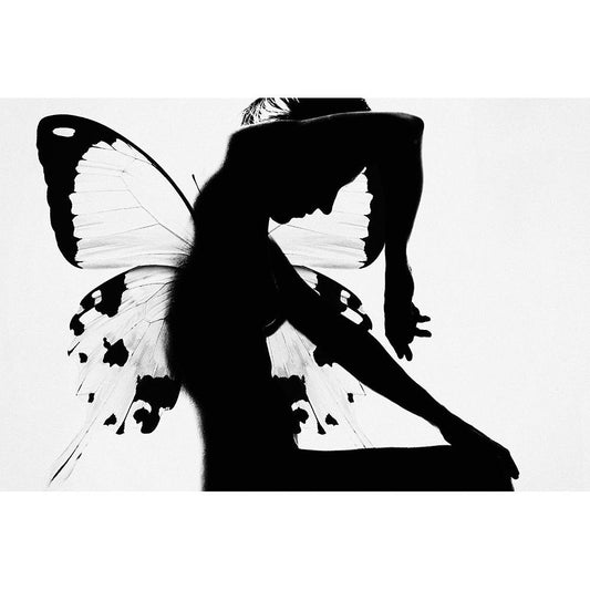 Butterfly Woman Black Modern Wood Framed Art Print by Blom, Therese
