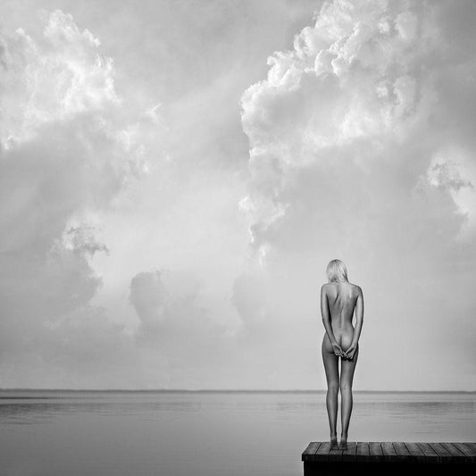 Delicately Poised Black Modern Wood Framed Art Print by Catchlight Studio