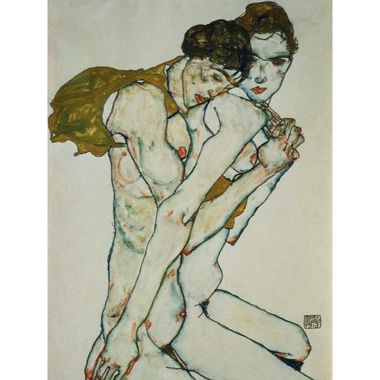 Friendship Black Modern Wood Framed Art Print by Schiele, Egon