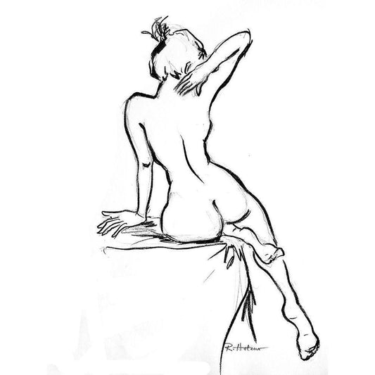 Crouching Nude in Shoes and Black Stockings-Back View Black Modern Wood Framed Art Print by Schiele, Egon