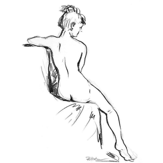 Seated Girl in Slip Black Modern Wood Framed Art Print by Schiele, Egon