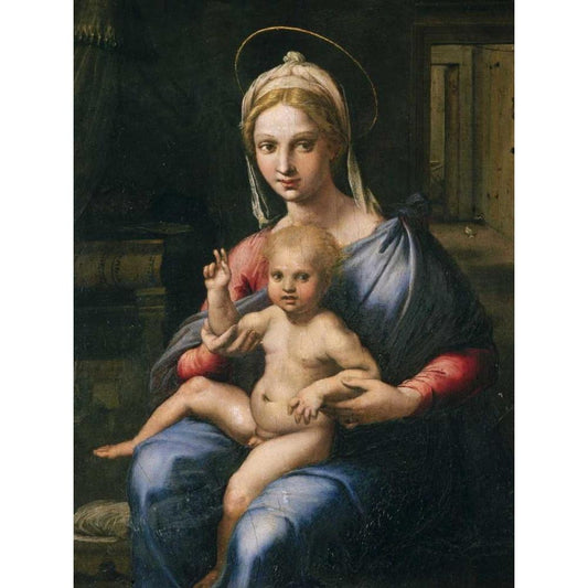 The Small Cowper Madonna Black Modern Wood Framed Art Print by Raffaello