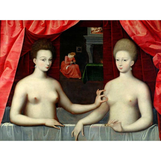 Gabrielle dEstrees and her Sister Black Modern Wood Framed Art Print by School of Fontainebleau