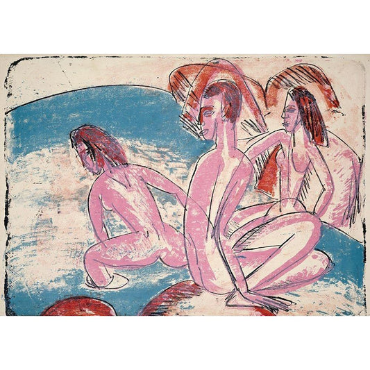 Three Bathers by Stones Black Modern Wood Framed Art Print by Kirchner, Ernst Ludwig