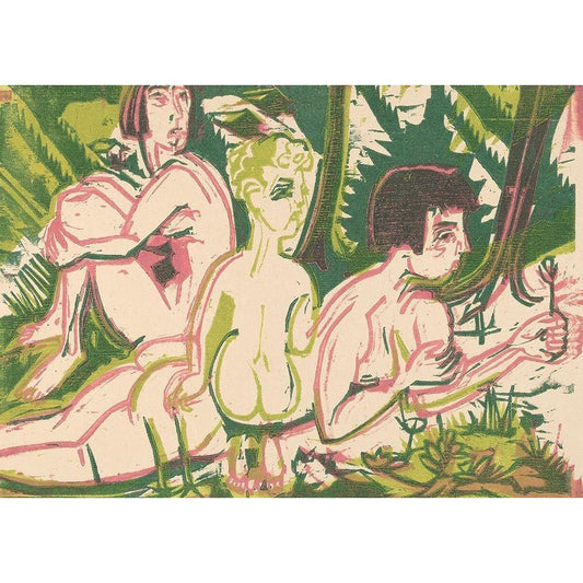 Nude Women with a Child in the Forest Black Modern Wood Framed Art Print by Kirchner, Ernst Ludwig