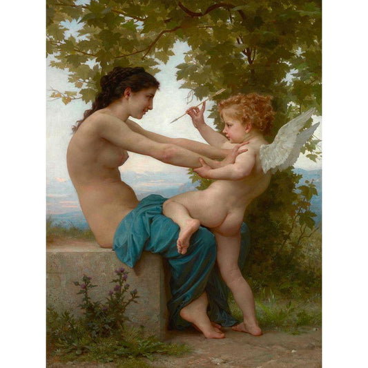 A Young Girl Defending Herself against Eros Black Modern Wood Framed Art Print by Bouguereau, William-Adolphe