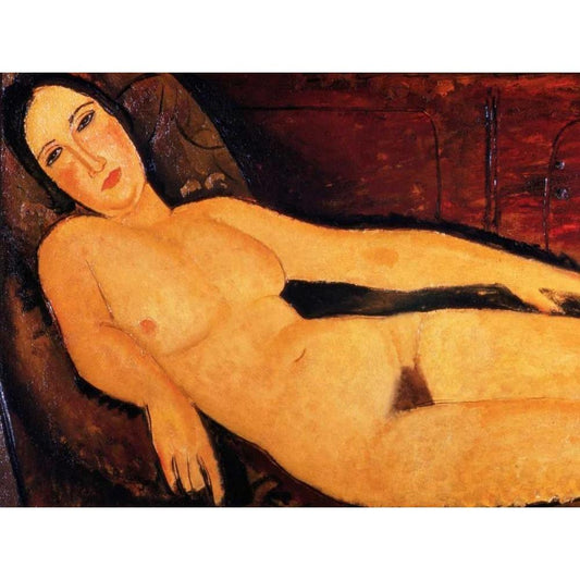 Nude on a Divan Black Modern Wood Framed Art Print by Modigliani, Amedeo